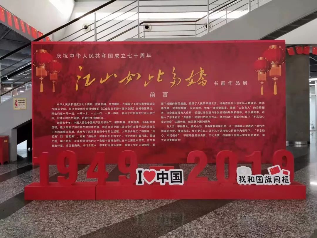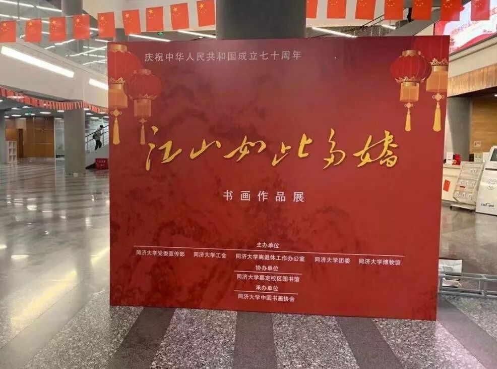为庆祝中华人民共和国成立七十周年和弘扬传统文化,由同济大学党委宣传部、同济大学工会、同济大学离退休工作办公室、同济大学团委和同济大学博物馆联合主办,同济大学嘉定校区图书馆协办,同济大学中国书画协会承办的《江山如此多娇书画作品展》巡展10月23日起在嘉定校区图书馆二楼西展区举行。9月23日至10月18日,曾在同济大学博物馆举办了该展览的首展并受到近千名书画爱好者的关注。