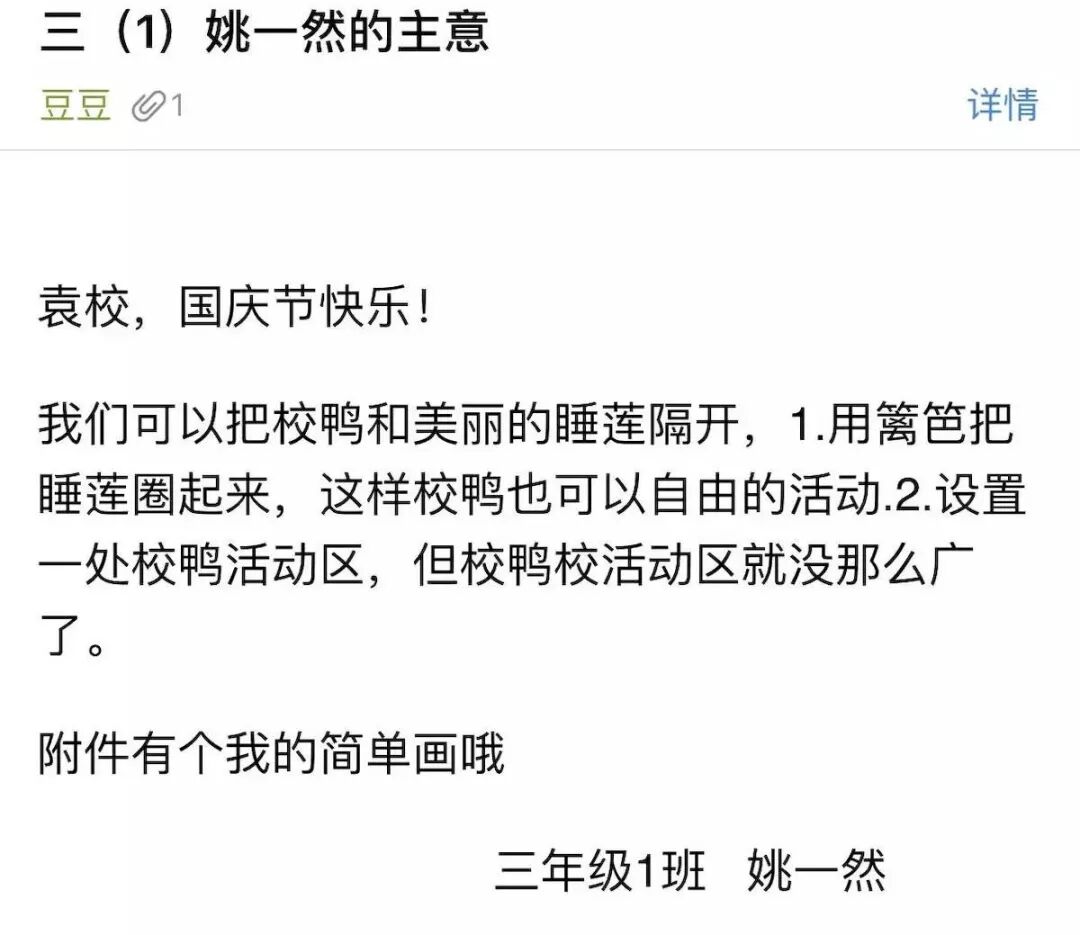 没想到,袁校长这封关于“鸭荷”矛盾的求助信,