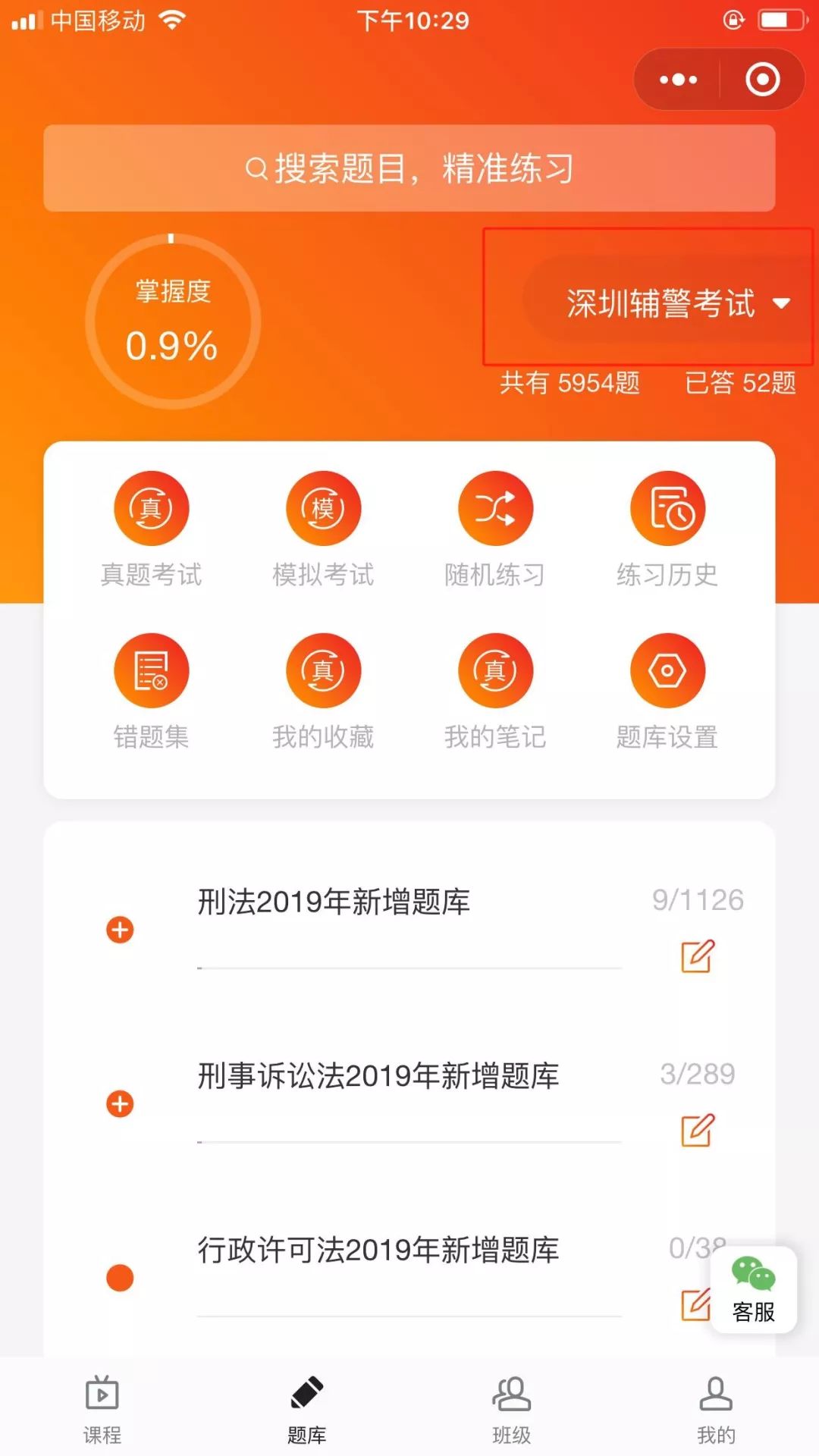 第二步:点击底部菜单栏“题库”,进入题库界面。