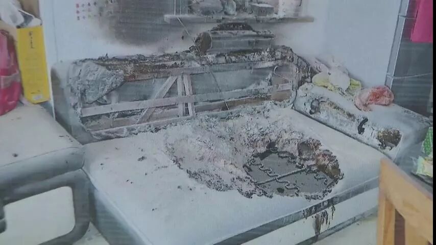 最终王某将沙发上的明火扑灭但是家中的沙发被烧毁窗户附近的墙壁也被熏黑