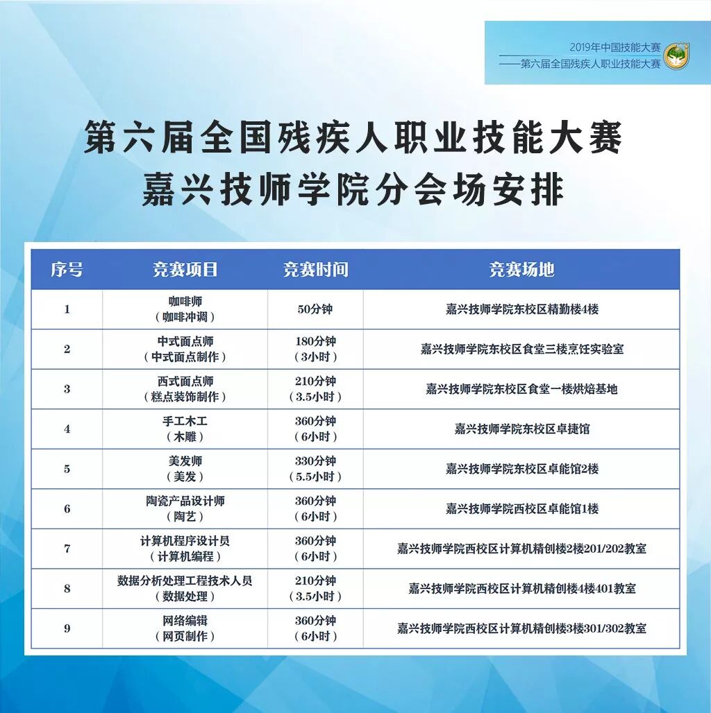 10月25日-30日 第六届全国残疾人职业技能大赛嘉兴技师学院分会场安排