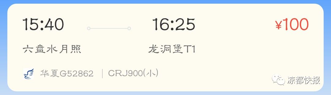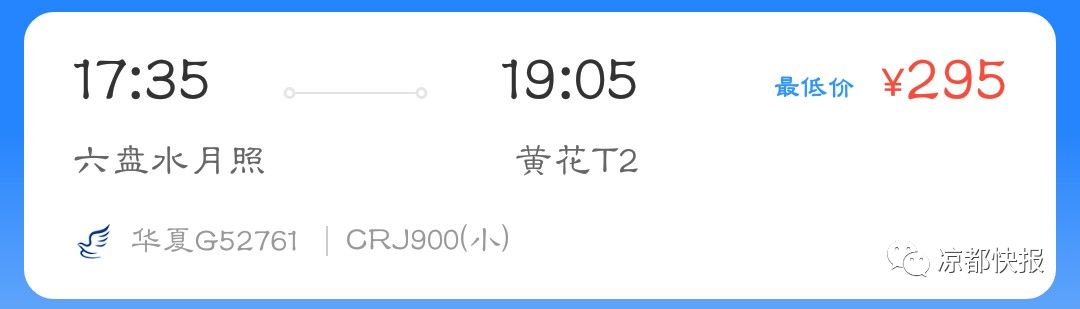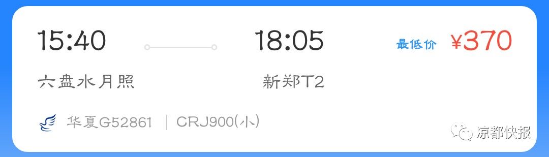 六盘水到贵阳的机票最近为10月27日航班。(华夏航空)