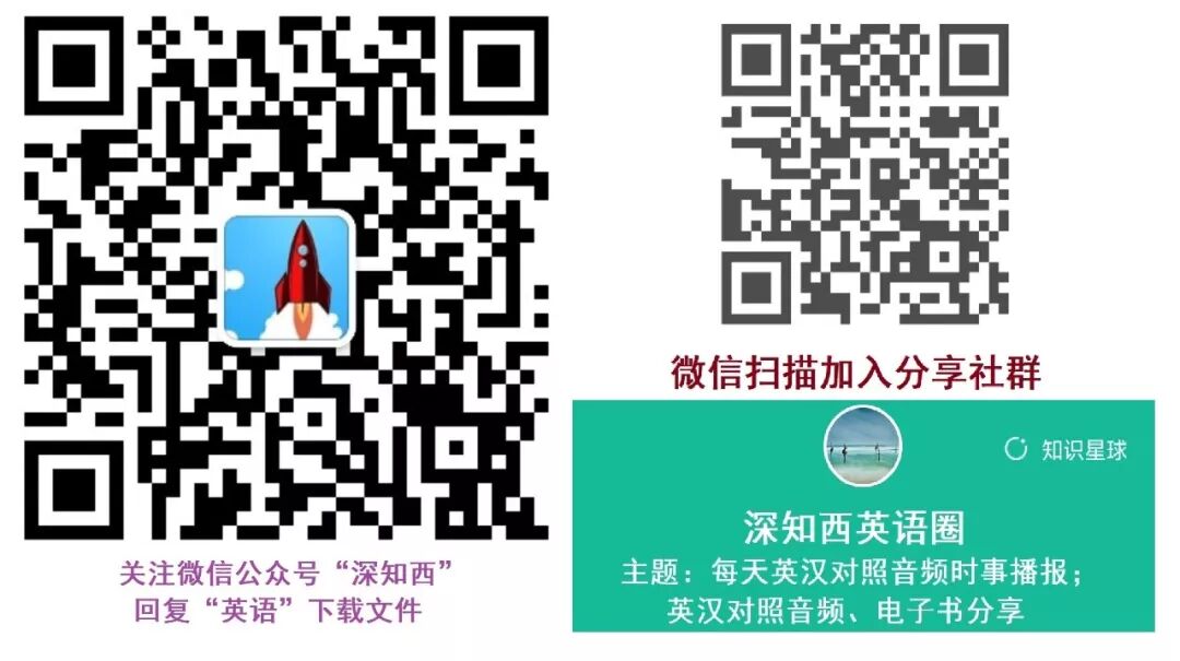 或者【关注微信公众号“深知西”,对话框回复“英语”】获取链接。如果链接失效,请通过公众号菜单联系方式通知小编。