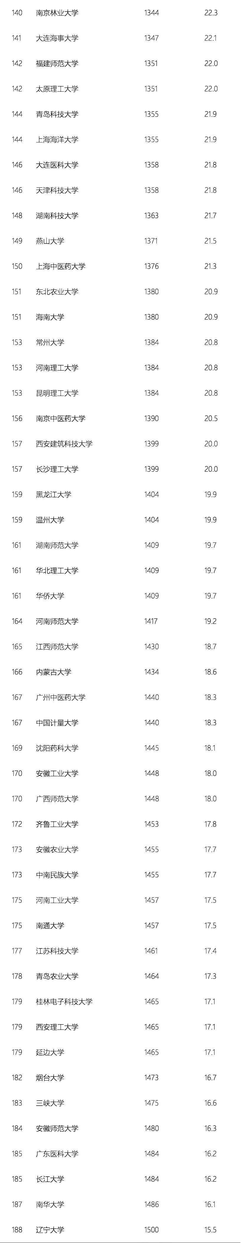中国223所高校上榜