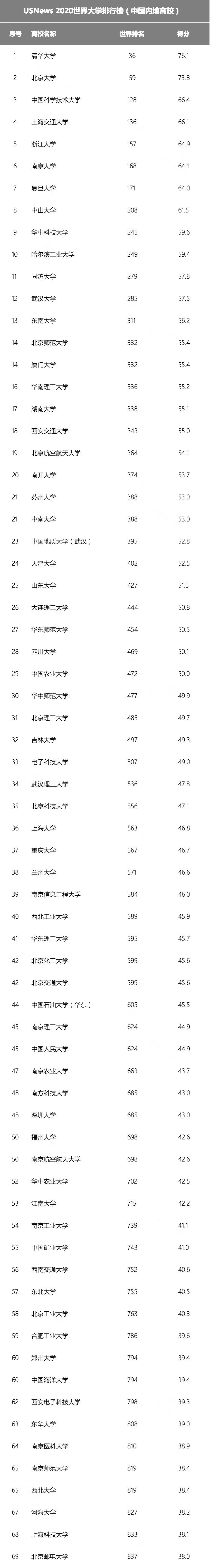近日,US News发布了2020世界大学排行榜。