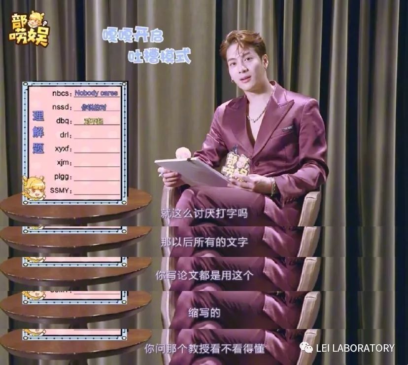 今天为了让我们LEI LAB的小伙伴们不被社会所淘汰小编就出几道饭圈缩写题看看大家
