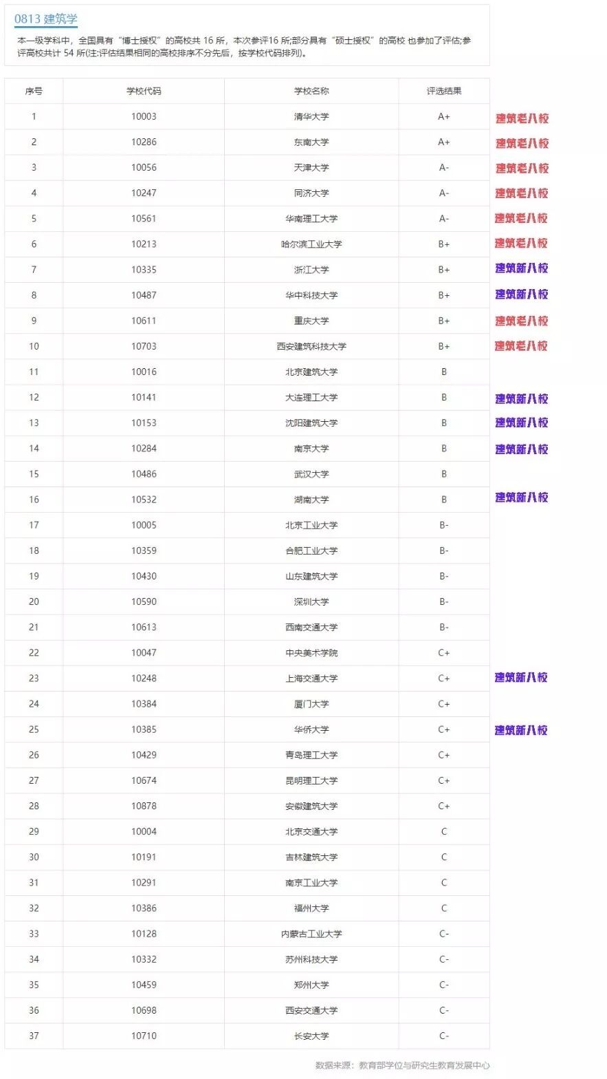 最后通过教育部第四轮的学科评估中建筑学类可以看出,