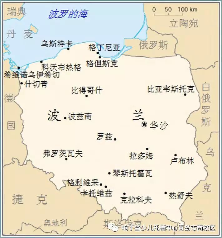 图中五星的就是波兰的首都——华沙。华沙是历史名城,在一战二战时期一度被占领。从公元10世纪起有居民点,13世纪获得城市资格,15世纪城市开始有了一定的规模并且历来都是波兰最大的城市。在第二次世界大战中遭到严重破坏,不过经过战后几十年的修复已经成为了一座美丽的城市。华沙,还被誉为"绿色首都",世界上绿化最好的城市。波兰是个饱受战争苦难的国家,而华沙更是见证了一场又一场的战乱,所以我们要珍惜现在的和平时光哦!