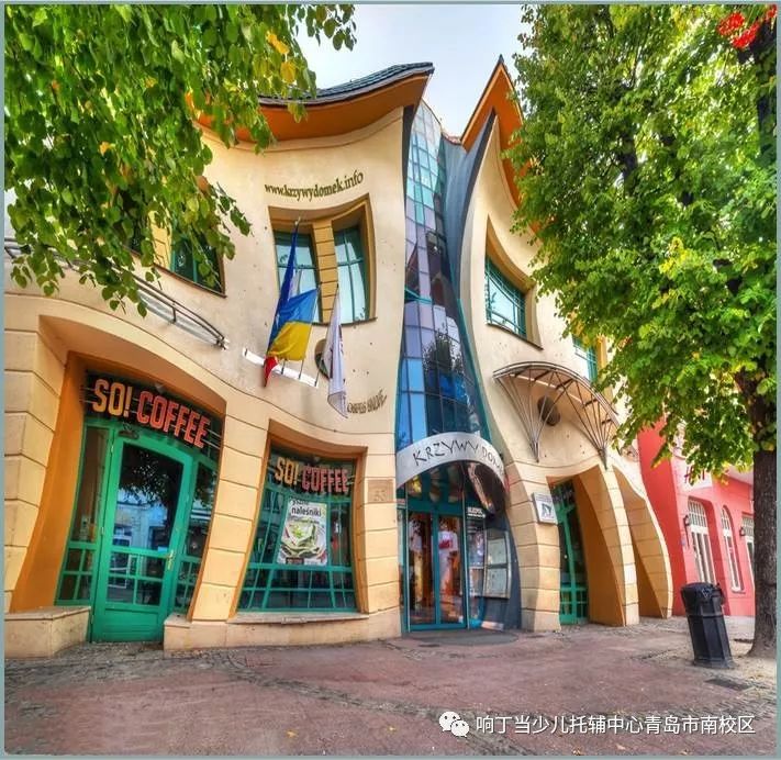 它建于2004年,楼身呈扭曲的褶皱形,你们见过喝醉酒的人吗?走路是不是歪歪扭扭的啊?大家看这座房子是不是就像喝醉酒的人啊?