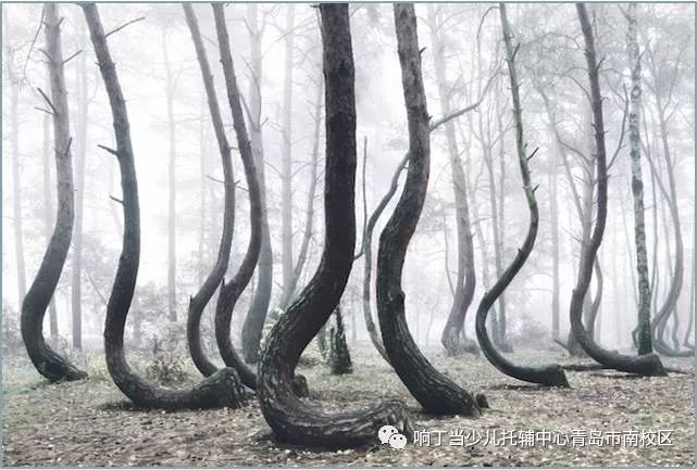 是不是很神奇?这些松树种植于1930年代,当时此地还属于德国波美拉尼亚省。是德国军队在第二次世界大战开始时种植的,一开始的小树苗都是笔直的。有人猜测说是有人故意弄弯的,为了方便做成船、手杖和犁具等。也有人说是雪暴的影响,大雪压弯了柔嫩的枝干。如果大家感兴趣的话,可以去弯曲森林看看哦。