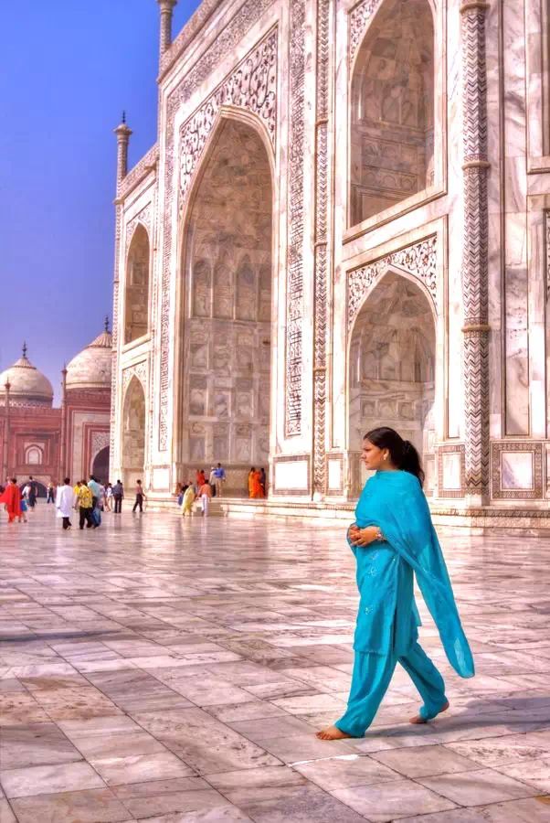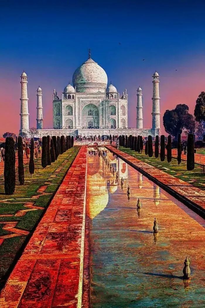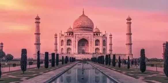 更神奇的是,泰姬陵在不同时间不同光线下,还会呈现出不同的面貌,清晨是浅黄色,太阳出来后是亮丽的白色,黄昏时分泰姬陵则从橘黄色逐渐变成暗红,而到月亮升起,又变成了银白色,可谓美轮美奂。