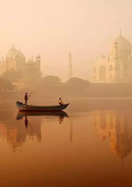 传说中的泰姬陵:耶穆纳河水倒映下,整个泰姬陵仿佛飘荡在水上的宫殿。