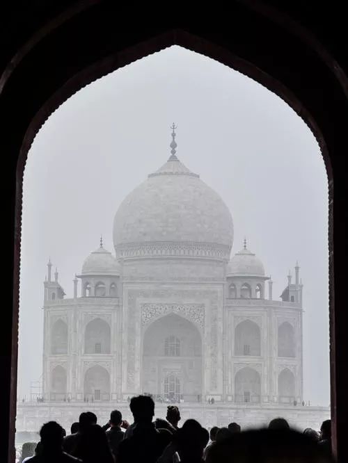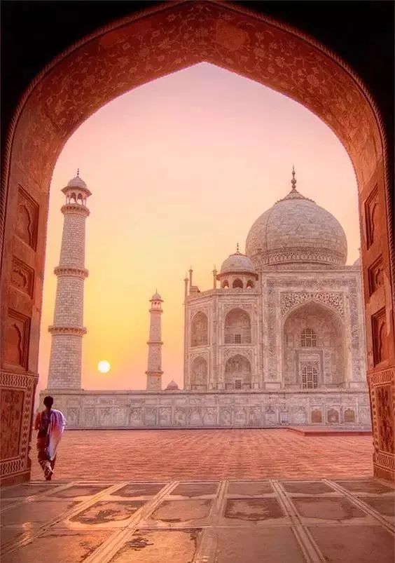传说中的泰姬陵:半透明的大理石在不同的时间段反射出不同的色泽光亮:晨曦映照下粉面桃花,正午日照时闪亮纯白,夕阳余晖里金橙炫目,月华荡漾中乳白温润。游客眼中的泰姬陵:啥?