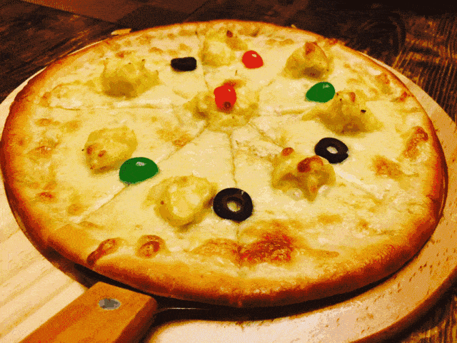 经过300℃高温烘烤之后,3分钟就可以出炉。芝士在饼底上沸腾,起起伏伏的泡泡...啊!谁的肚子在咕噜咕噜唱歌。
