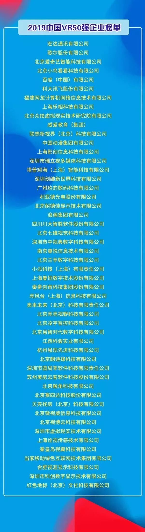 2019中国VR50强企业发布