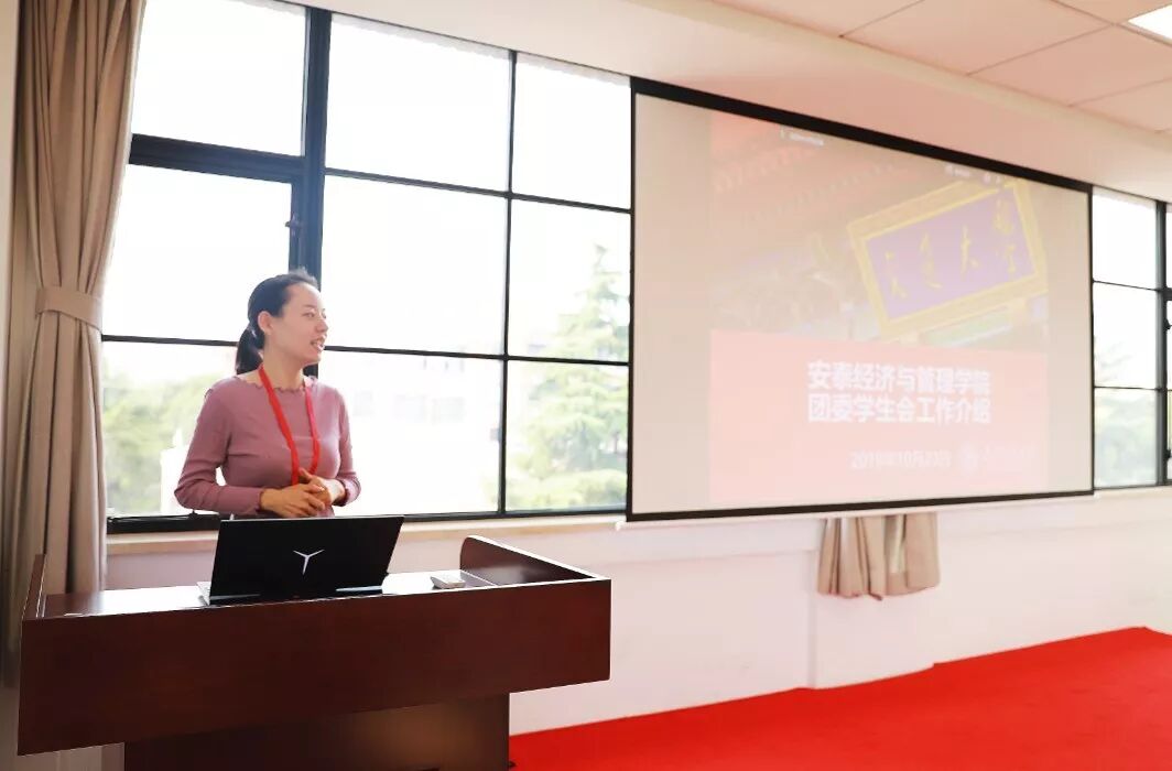 01:上海交通大学安泰经济与管理学院团委书记范恒老师向各单位汇报了安泰团学工作的开展情况以及团学的品牌特色活动。