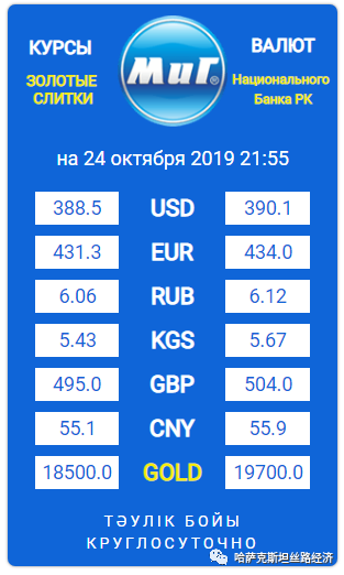 【обменный курс】2019年10月25日哈萨克斯坦坚戈汇率
