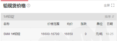 10月25日,上海现货1#铅价格涨0元/吨,均价16650元/吨!总算是稳住了!