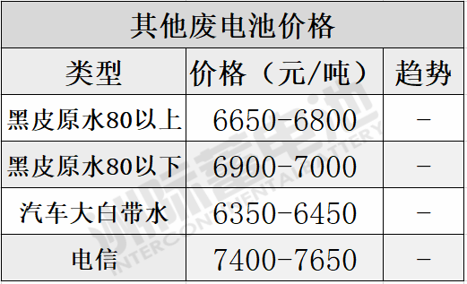 废电池方面,今日铅价略有回升迹象,废电池价格暂时稳住了,今天各厂报价大多与昨日持平。有群友笑称,囤废电池还不如囤猪肉!有没有说出你的心声?