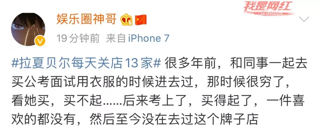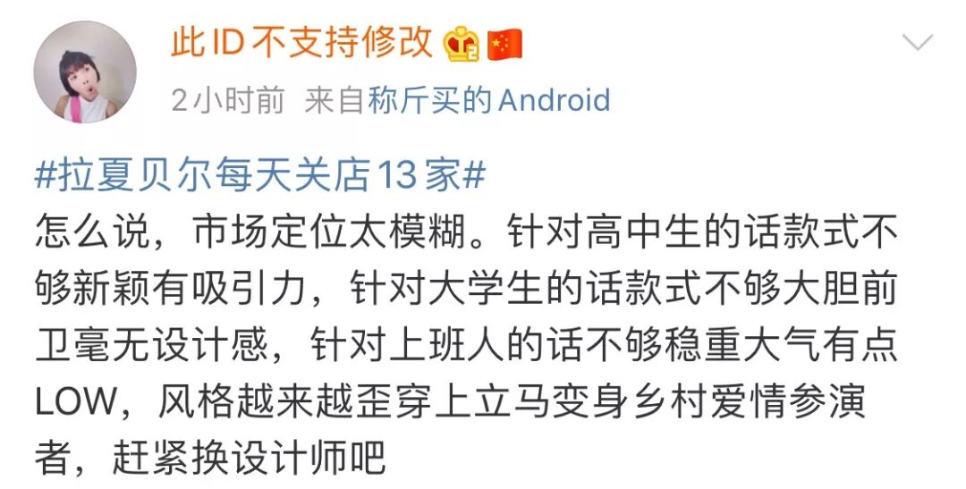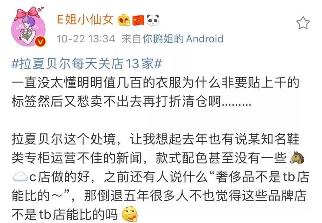 今天,一条“拉夏贝尔每天关店13家”的热搜登上热搜榜第2话题阅读数1.4亿,讨论数9804