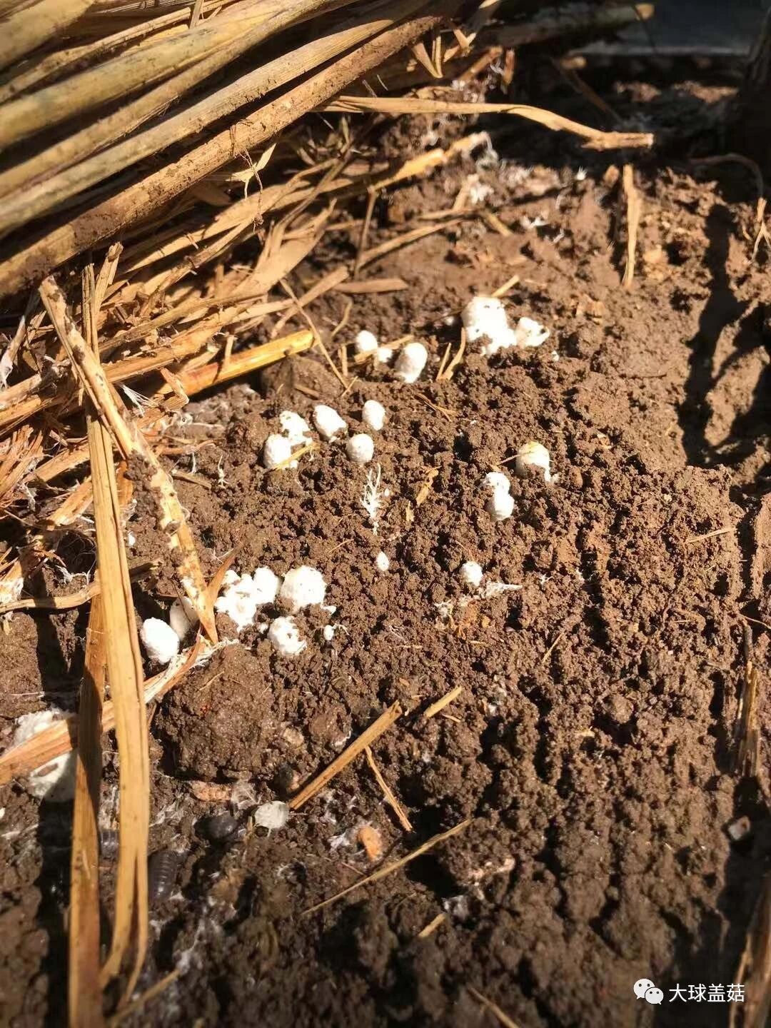 林下大球盖菇,淄博基地出菇,菌林天下.8月20号播种,10月10号见菇蕾(图四),10月15号见蘑菇.种的早,出菇早,相应的风险也大,杂菌发生情况也会比低温播种...