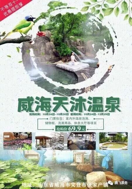 最后一天抢购威海石岛赤山49.9,威海天沐温泉69.9,淄博齐鲁欢乐世界29.9,千禧农谷双人111.1