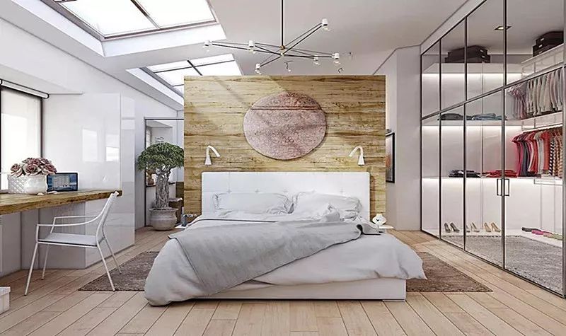 床是卧室中占地面积最大的家具,可以将床摆放在靠窗或者靠墙的位置;这样可以将卧室其它空间释放出来,让卧室更显宽敞。