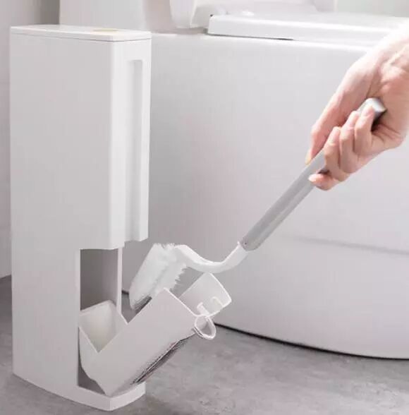因为卫生间小的原因,很多情况下马桶边上都有一个空隙,但是这个空气并不足以容纳垃圾桶和马桶刷这两样东西,所幸设计师就将两者和到一起,要注意,这并不只是为了满足空间的要求所设计,而是满足了先进的居家理念,只有这样才能让卫生间更干净更卫生。