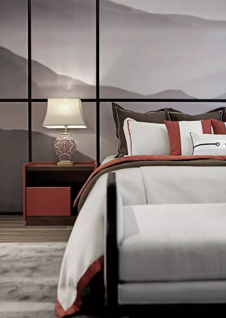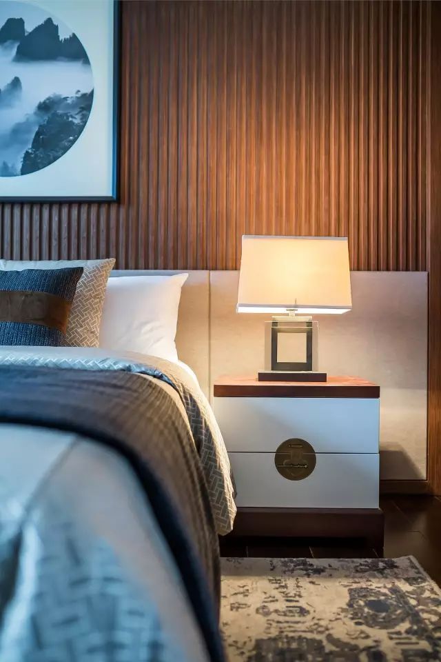 现代人对于居住空间的追求,越来越倾向于简单舒适、温馨实用,所以新中式卧室在设计风格上,将现代生活理念融入其中,少了许多奢华的装饰,而是采用利落的线条来勾勒层次,更加细腻、流畅地表达传统文化中的精髓。