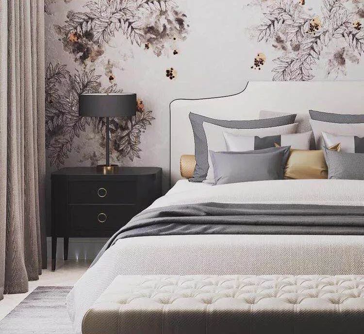 而床品、窗帘、床头背景墙等其他装饰细节,也在用色上偏向舒缓、雅致,与整体气质和谐统一,巧妙地传达着家居主人的审美品味。