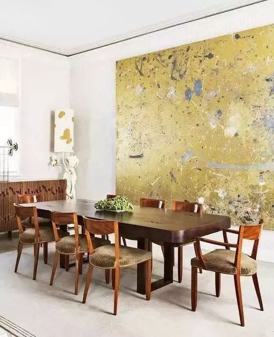 对于大面积的餐厅,最舒服的格局就是把餐桌摆放在餐厅的中间位置,这样每一个餐椅位置都能移动位置,就坐者能根据自己的习惯来调整坐姿。而在一些面积较小的餐厅中,餐桌往往就只能靠墙布置了,这个情况下靠餐桌的这面背景墙,该如何布置更精致大气呢?