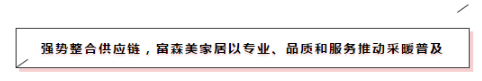 富森美家居对采暖的整合,直接体现在了最终的价格、质量和服务上。在安装和售后方面,也将整合行业最为人性化的服务体系为消费者保驾护航。