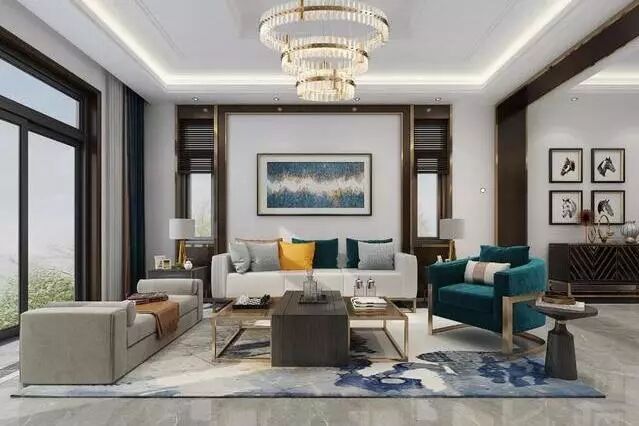 浪漫的欧式风格通过室内线条感的变动,华丽的色彩体验,在形式上突出浪漫元素。因而在材料选择上,多采用天然石材、色彩丰富的纺织品、精细做工的地毯以及油画等装饰品,让整个客厅空间看起来非常大气浪漫,典雅自然。欧式风格的客厅更是注重华丽装饰效果,通过别致的造型达到富丽堂皇的效果。