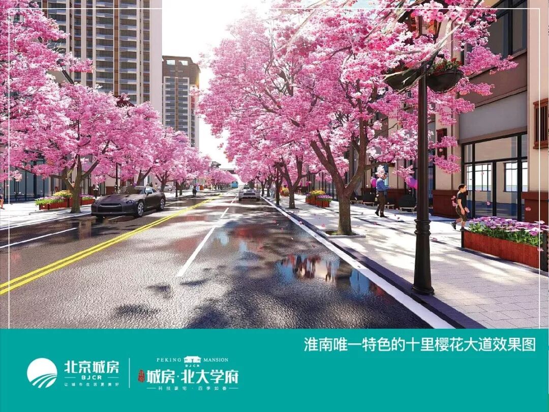 北京城房·北大学府打造淮南唯一的特色十里樱花大道,春风送暖樱花绽放,整个社区被灿烂的樱花包围,馨香四溢,浪漫梦幻,绵延十里的景观,让人震撼无比。北京城房·北大学府12000+㎡的景观园林,四季景色各异,春赏樱花,夏看紫薇,秋日银杏,冬天腊梅。四季花海,漫步社区,美好生活在此开始。
