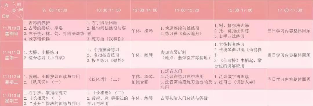 1.本课程琴曲班学员建议自带琴曲2-3首,报名前与李悦老师沟通回课内容。