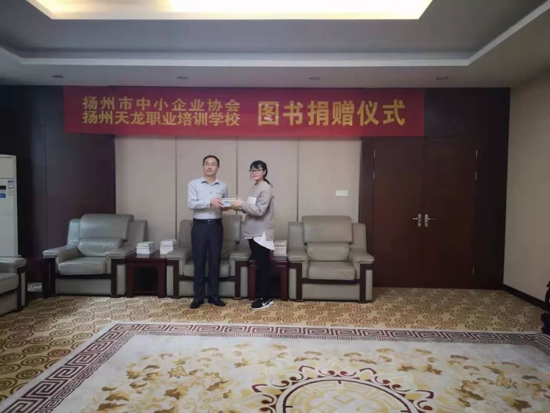 十年树木,百年树人。教育是国家的未来,书籍是人类文明和精神传承的载体,读书可学习知识、开阔视野、陶冶情操。一本书能点燃梦想,能带来希望,能打开一扇窗,能给人以启迪,能开启美好的前程。当天下午,图书捐赠仪式在经济开发区实验中学进行,扬州天龙职业培训学校汤志荣致辞,实验中学接受了捐赠的图书并发给了荣誉证书。