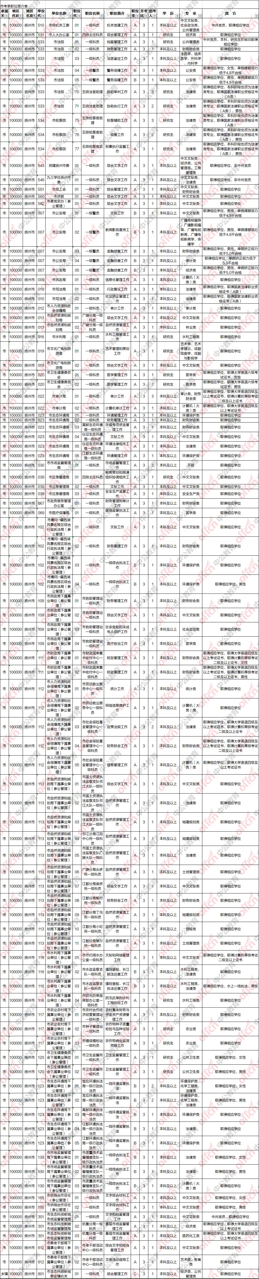 职位表 扬州各区市招录情况