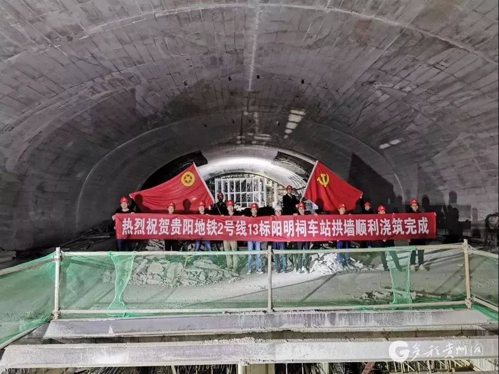 10月23日,贵阳地铁2号线阳明祠车站最后拱墙衬砌混凝土浇筑完成,标志着该车站主体结构浇筑完成。