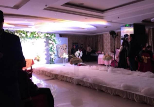 田女士:我们是两点半到的,迎宾区都只有背景,下午四点都只做了三分之一,只做了地毯,背景只做了很小一部分。