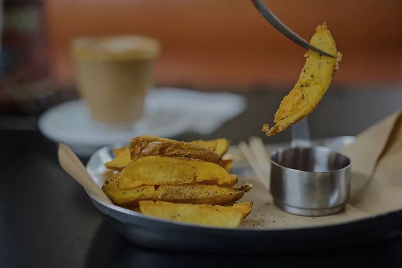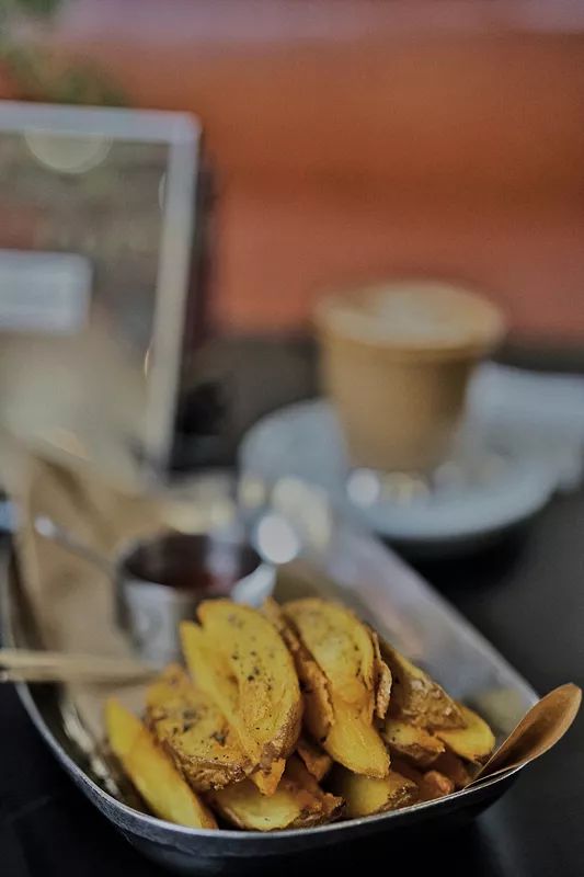镂空的大落地窗,铁锈也加了层柔焦。你会在店里发现很多充满生命力的小角落,咖啡从外开的窗里偷偷跑出去。