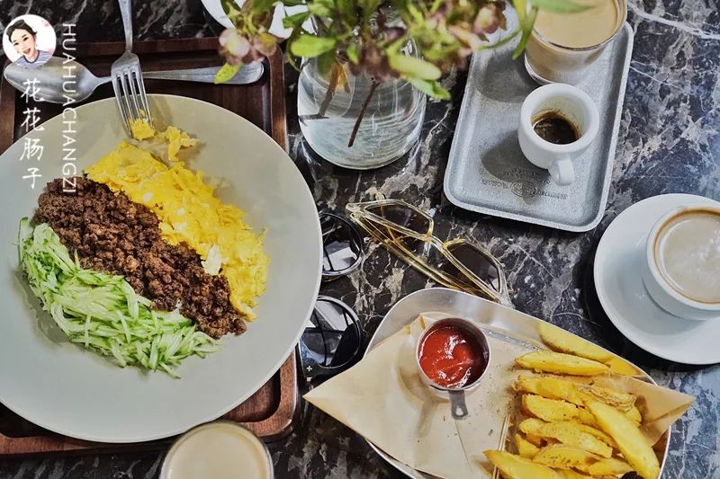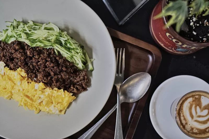 刘先生店里的咖啡都是常见的咖啡,意式咖啡、美式浓缩、卡布奇诺、澳白、拿铁都能在店里喝的到,在这间新店里,还能吃的到些许的简餐。
