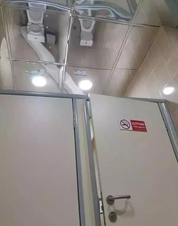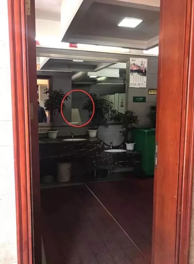 该公厕的男卫生间内,安装在洗手池墙上的镜子正对便池,男厕外的人可通过镜子看见正在如厕的人……画风有点尴尬。