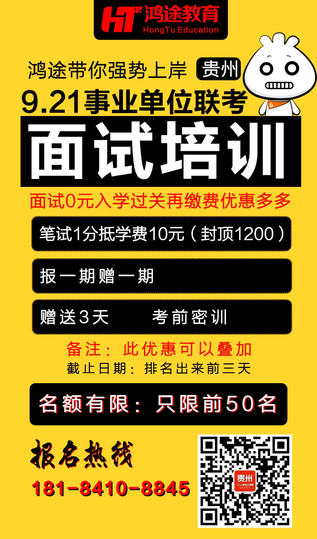活动1:9月21日联考面试报班:笔试1分底学费10元,最高可以享受1200元优惠,活动限名额50人且在出排名之前预约可享受。