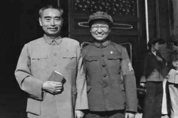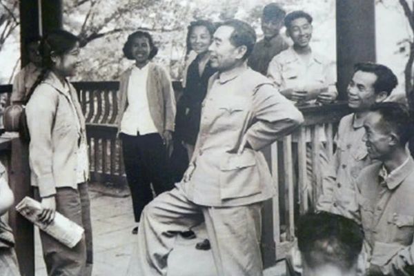 周总理与毛主席女儿李讷在一起的合影,两人脸上充满了笑容。