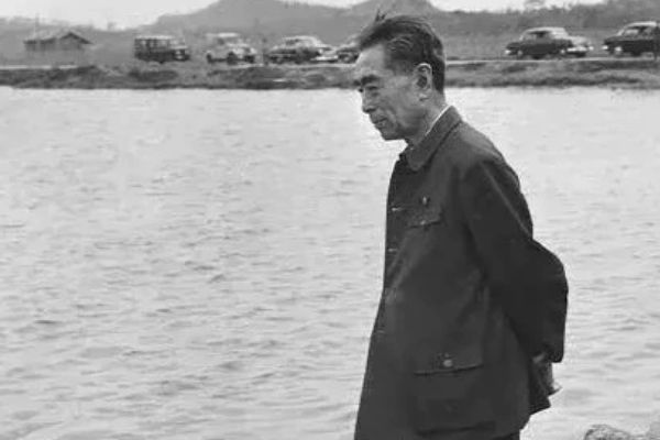 老照片:周总理正站在河边沉思,周总理在贵阳与当地人民进行亲切交谈