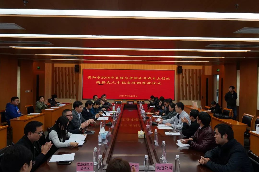 0410月24日,贵阳市2019年直接引进到企业或自主创业高层次人才住房补贴发放仪式在贵阳国际人才城三楼招才引智厅举行,贵阳市11名高层次人才获得160万元住房补贴。