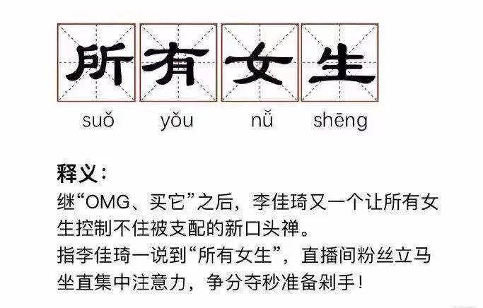 有人表示,自己被“所有女生”这四个字操控了,只要李佳琦一喊“所有女生”,自己的耳朵立马就竖起来了,还超级想大声喊到!