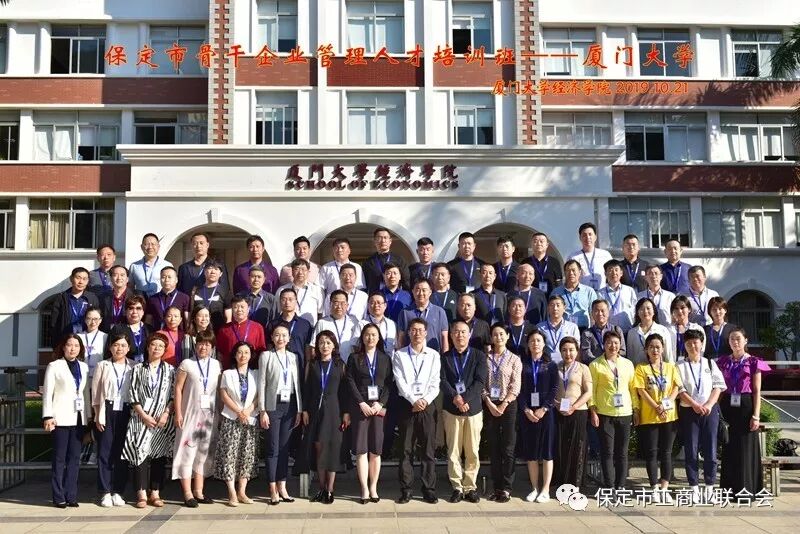 为深入推进“不忘初心,牢记使命”主题教育,激励我市民营企业家坚定信念,砥砺前行,进一步提升企业人才宏观管理能力等多方面素质, 10月21-23日,保定市工商联骨干企业管理人才培训在厦门大学经济学院成功举办。市工商联主席霍占利、副主席陈玉胜、各县(市、区)工商联主席(书记)及我市有一定规模和影响力的企业家共70余人参加了学习。