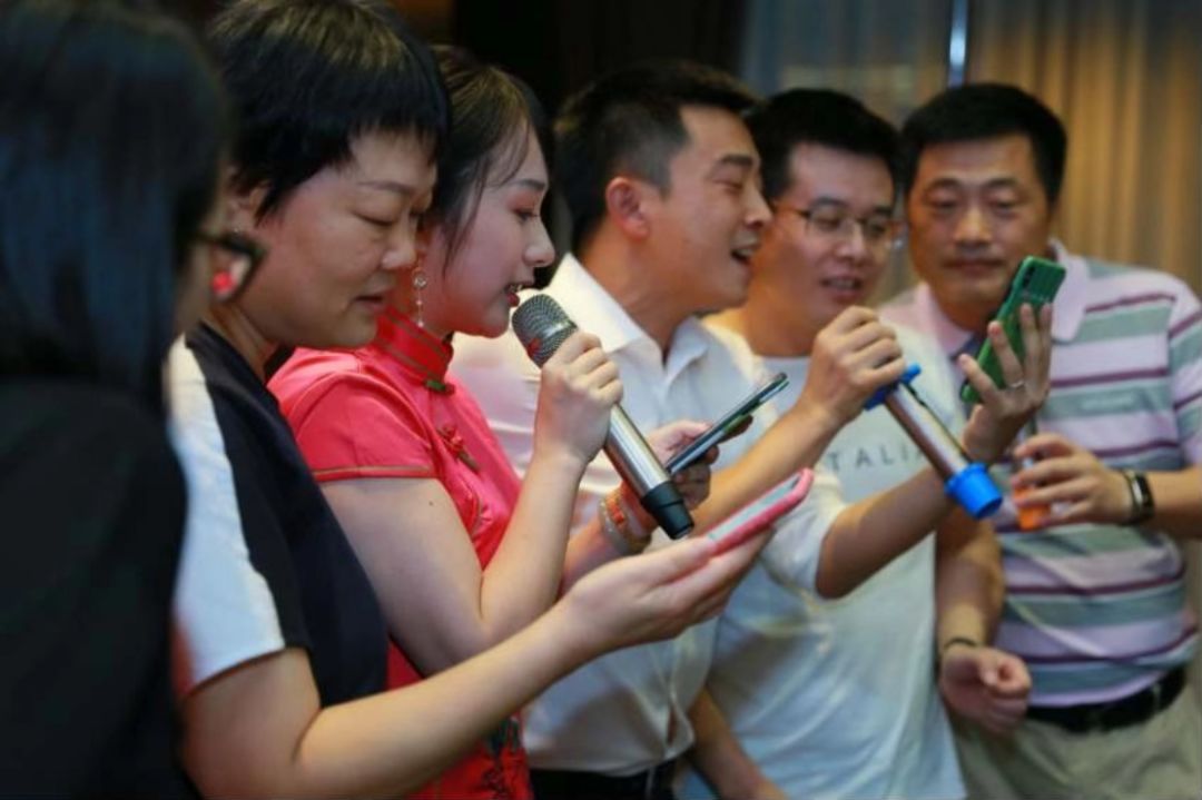 团长和政委以一曲《捉泥鳅》宣告K歌竞赛开始。穿这么端庄大方的,难道不应该唱《我的中国心》吗?怎么“捉泥鳅”去了,童心未泯啊!(画面请各位自行脑补)。小编也是好奇,一屋子人,就他俩戴围巾,也真是很有默契!