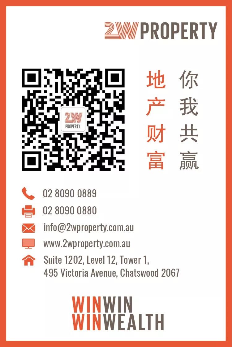 请即刻联系您身边双赢团队置业顾问或发短信至“咨询热线”:0451 368 808 或email至:info@2wproperty.com.au或点击识别以下“双赢客服”二维码更多优惠惊喜等着您